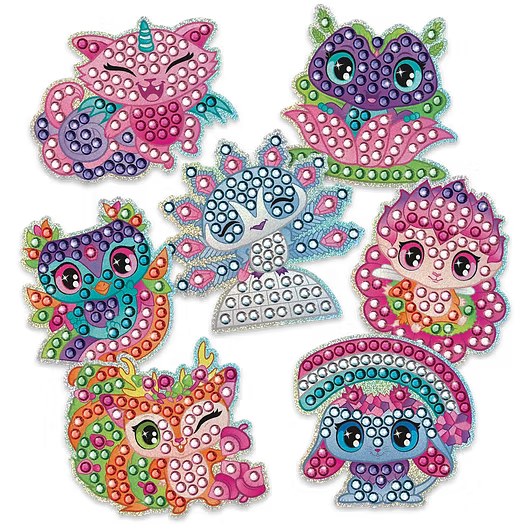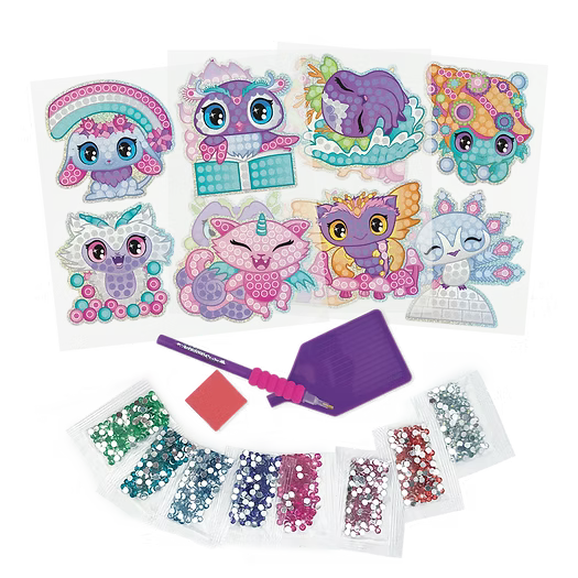Create 12 dazzling stickers! Use a special applicator to apply shiny gems to adhesive templates,
